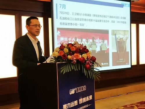 通用股份董事長顧萃先生在會議上作了“賦能2018”的重要主題演講?;厥?017,顧董對宏觀經(jīng)濟(jì)和行業(yè)情況進(jìn)行了生動解讀。展望2018,顧董以“大、新、快、鏈”四個字闡述了當(dāng)下時代的發(fā)展趨勢,探討了智能化以及創(chuàng)新思維對未來工業(yè)和生活的深遠(yuǎn)影響。通用股份將從“制造、產(chǎn)品、營銷、管理、服務(wù)”五大賦能促進(jìn)變革發(fā)展,搶占先發(fā)優(yōu)勢,智能制造升級,全球化視野布局,全方位提高效率,做最好的自己。