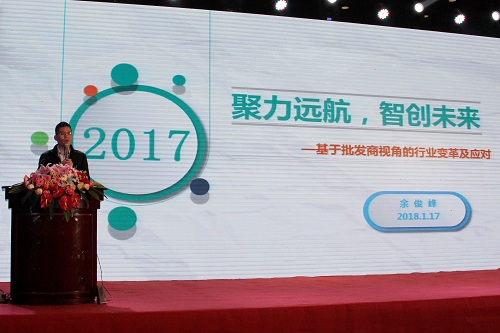 四川鑫蜀通輪胎有限公司總經(jīng)理余俊峰在大會上分享了“基于批發(fā)商視角的行業(yè)變革及應(yīng)對”觀點。2017年,鑫蜀通在“不只埋頭拉車,更要抬頭看路”、“錘煉內(nèi)功,鍛造軟實力”、“緊跟通用發(fā)展步伐,凝心聚力”這三個層面上辛勤開拓,積極應(yīng)對行業(yè)變革,不斷探索創(chuàng)新發(fā)展機(jī)遇,創(chuàng)造了屬于他自己的輝煌。
