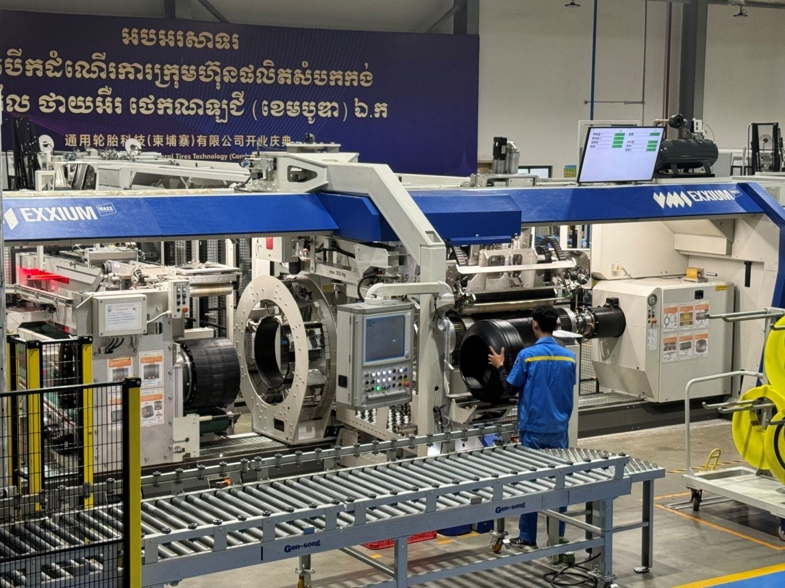 走進通用輪胎科技(柬埔寨)有限公司,目之所及都是智能化的生產(chǎn)設備,工廠內(nèi)建有13個立體智能倉庫,91個機器人。令人驚嘆的是,從半部件到一條20寸的輪胎成型,僅需33秒的時間就完成了。該工廠自2023年5月正式開業(yè)以來,以打造智能化、自動化、信息化的現(xiàn)代化工廠為目標,推進智能制造和精益制造,僅一年時間,一期項目就實現(xiàn)了全面達產(chǎn)。如今,正在加快推進二期項目建設,一期、二期全部達產(chǎn)后,將具備年產(chǎn)850萬條半鋼子午胎和165萬條全鋼子午胎的生產(chǎn)能力。