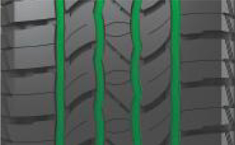 胎肩花紋厚實提升花紋耐久、載重及行駛轉(zhuǎn)向性能。
