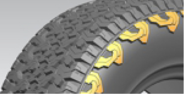 采用高耐磨橡膠和填充增強(qiáng)體系有效抵御惡劣路況行駛中的外部損傷,同時(shí)還能提高車輛泥地和沙地行駛的牽引性。